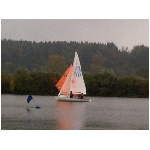 Beide Bärensee-Optis sind hinausgefahren und haben sich mit den bekanntermaßen starken Seglern vom Forggensee gemessen. Kathi Huber hatte schon vor dem ersten Start das Boot voller Wasser. Als Sie endlich losfahren konnte, war das Feld schon weit enteilt. Bis ins Ziel gelang es ihr aber noch, eine ganze Reihe anderer Boote einzuholen. Bruder Paul war froh, als mit 10 Jahren Jüngster das Ziel überhaupt erreicht zu haben und schenkte sich die zweite Wettfahrt. Bei der traten nur noch sieben Boote an: Kathi allein gegen den Füssener Segelclub - SCFF.